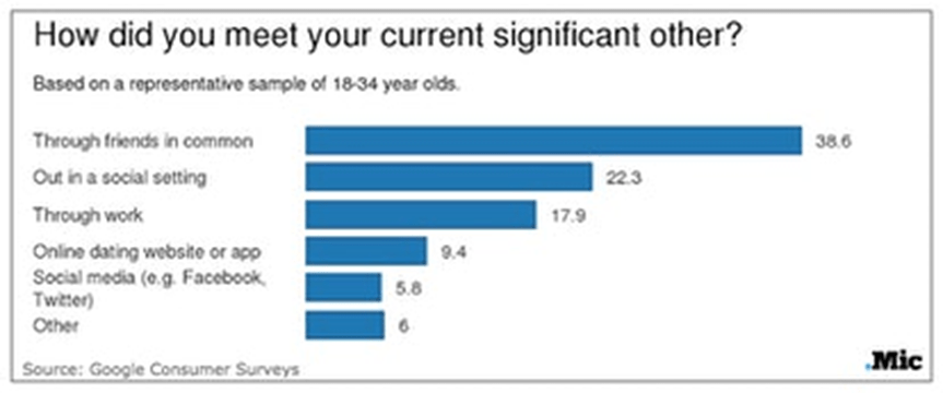 So, actually, the chances of meeting someone special are not usually through online dating sites. Most people met future spouses through friends, at a social gathering and either work or school. So, it helps to have friends!